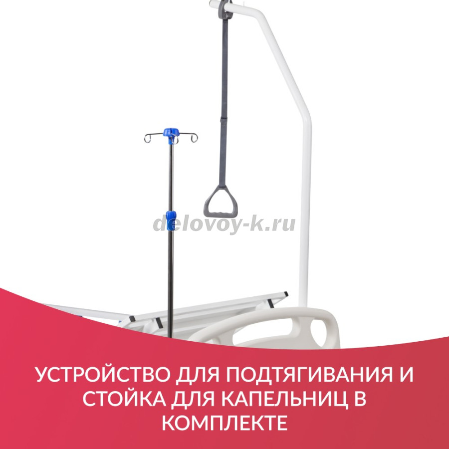 Оснащение: Инфузионная стойка; стойка для подтягивания; боковые ограждения металлические 2 шт., складные; торцевые ограждения