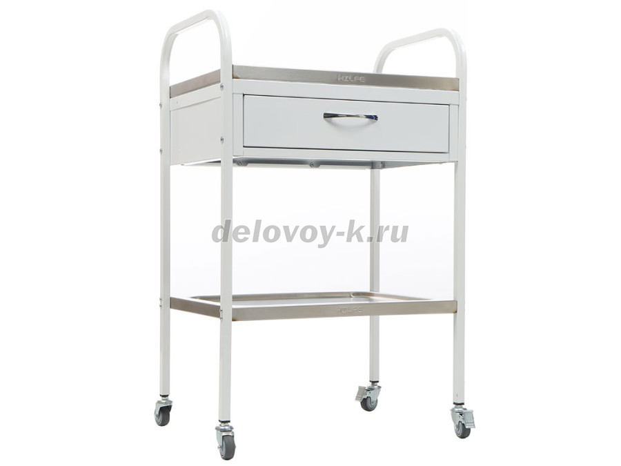 столик процедурный имеет 4 колеса из немаркой резины, D= 50 мм. Два колеса снабжены тормозом