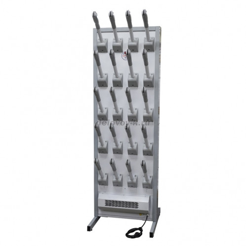 В нижней части корпуса модулей для сушки обуви встроен блок нагрева. В верхней части корпуса встроена бактерицидная лампа ультрафиолетового излучения, которая обеззараживает проходящий через обувь воздух.