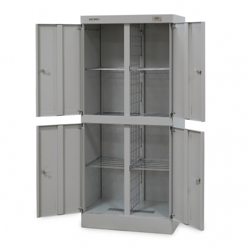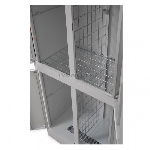 Верхняя часть корпуса имеет 4 секции, изолированные друг от друга сетчатыми перегородками, позволяющими свободно проходить воздушным потокам, каждая из которых закрывается своей дверцей с почтовым замком. Внутри каждая секция снабжена съемной сетчатой полкой с возможностью установки в двух положениях по высоте. К сетчатым полкам можно так же подвешивать плечики с одеждой.