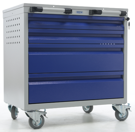Перфорированные боковые стенки тележки, позволяющие размещать на них аксессуары (навеску для экранов)